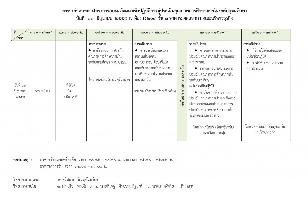 - วันที่ 11 มิถุนายน 2558 ณ คณะบริหารธุรกิจ โดยวิทยากรดังนี้